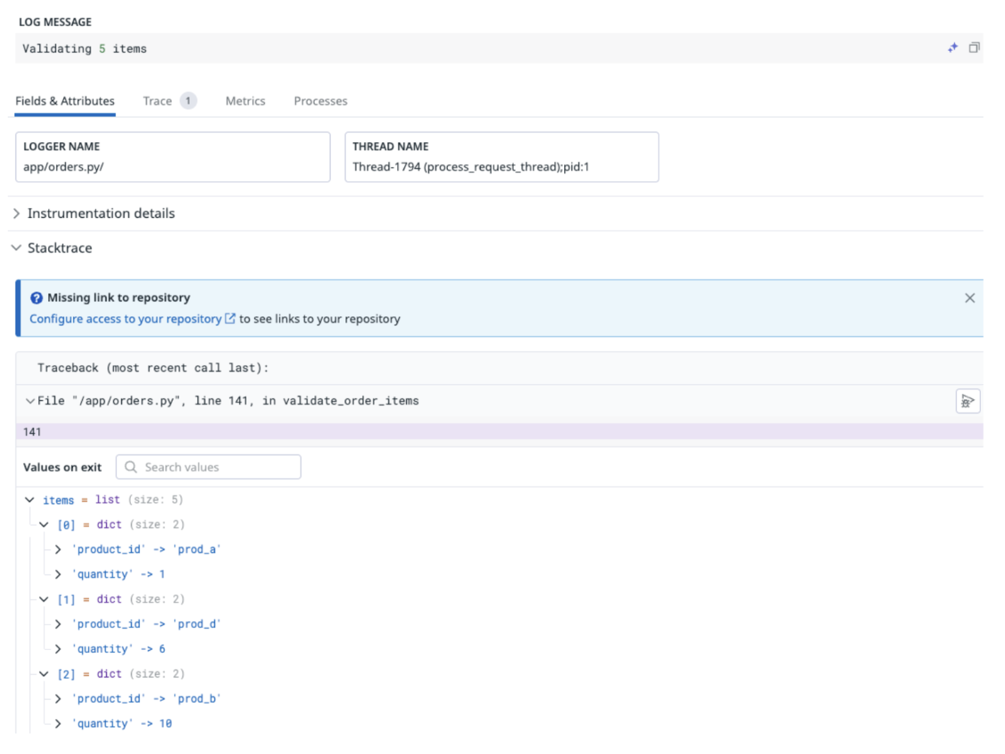 For our logs - we now also have additional contextual information provided by this instrumentation from our captured variables: