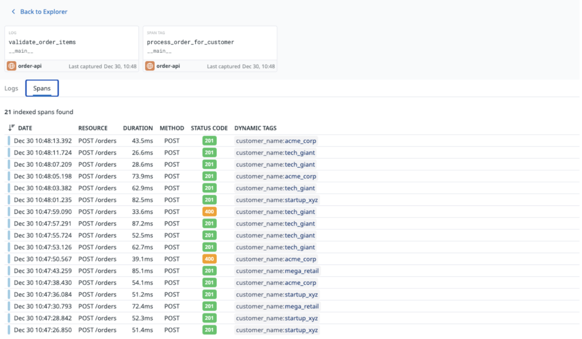with tracer.trace("process_order_for_customer") as span: