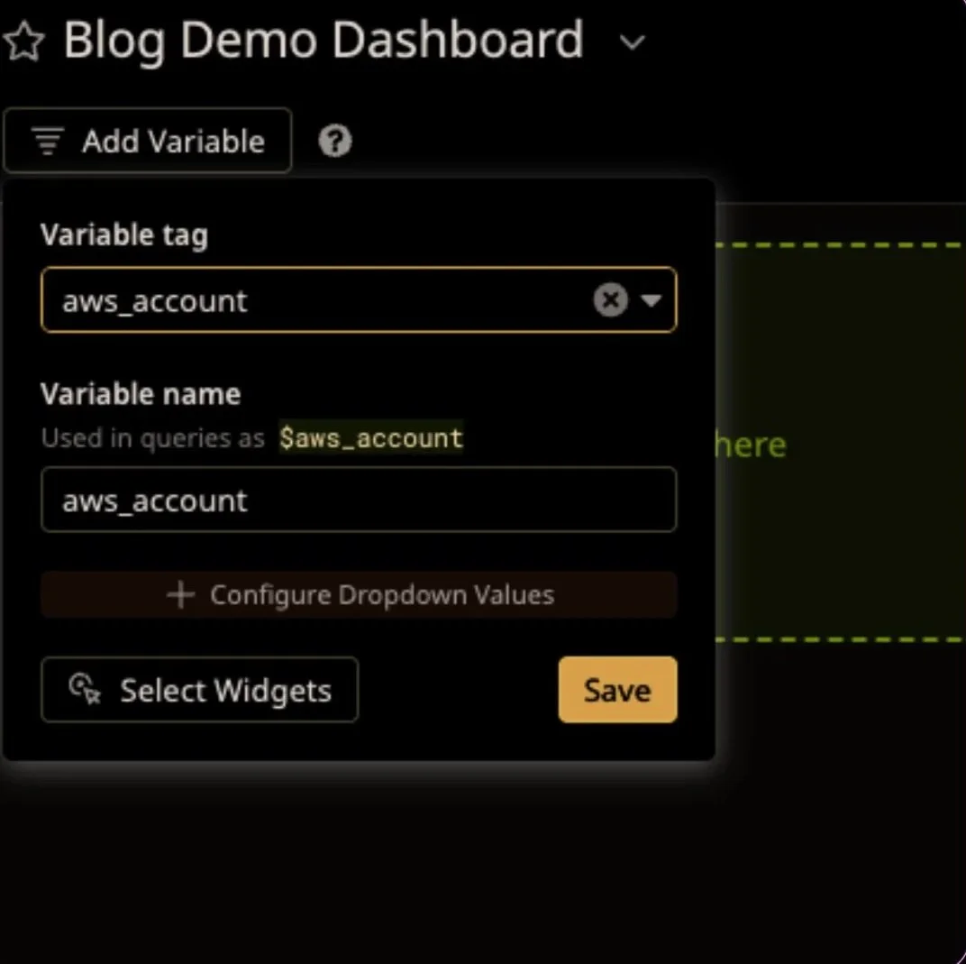 Clicking on “Add Variable” will give us a list of tags that we can use. We’ll start with the high level tags, like “env” and “aws_account”.