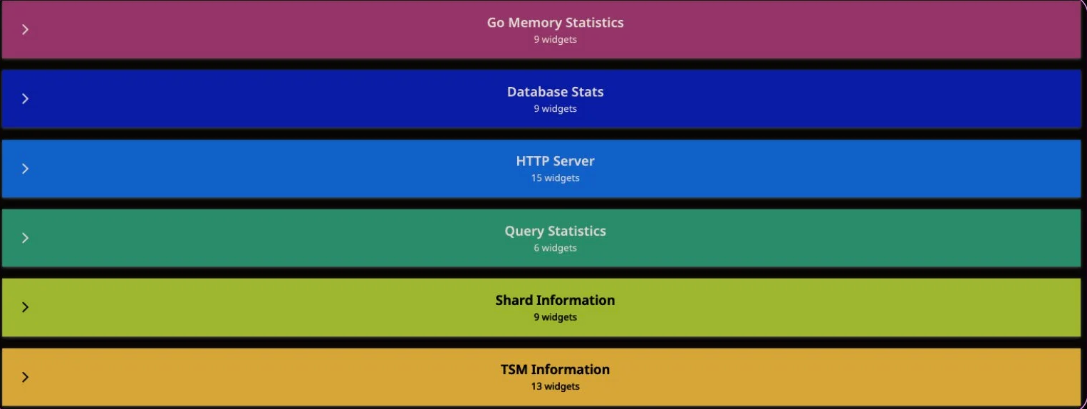 And does it go on and on past this? This can get really tough to read, and really tough to decipher or hand off to someone else to look at. One of the best things that you can do is to begin categorizing your panels by using group widgets. Create a group from the widget menu, give it a good name (and a color, if you feel fancy), and drag your related widgets into it. Now our dashboard looks more like this: